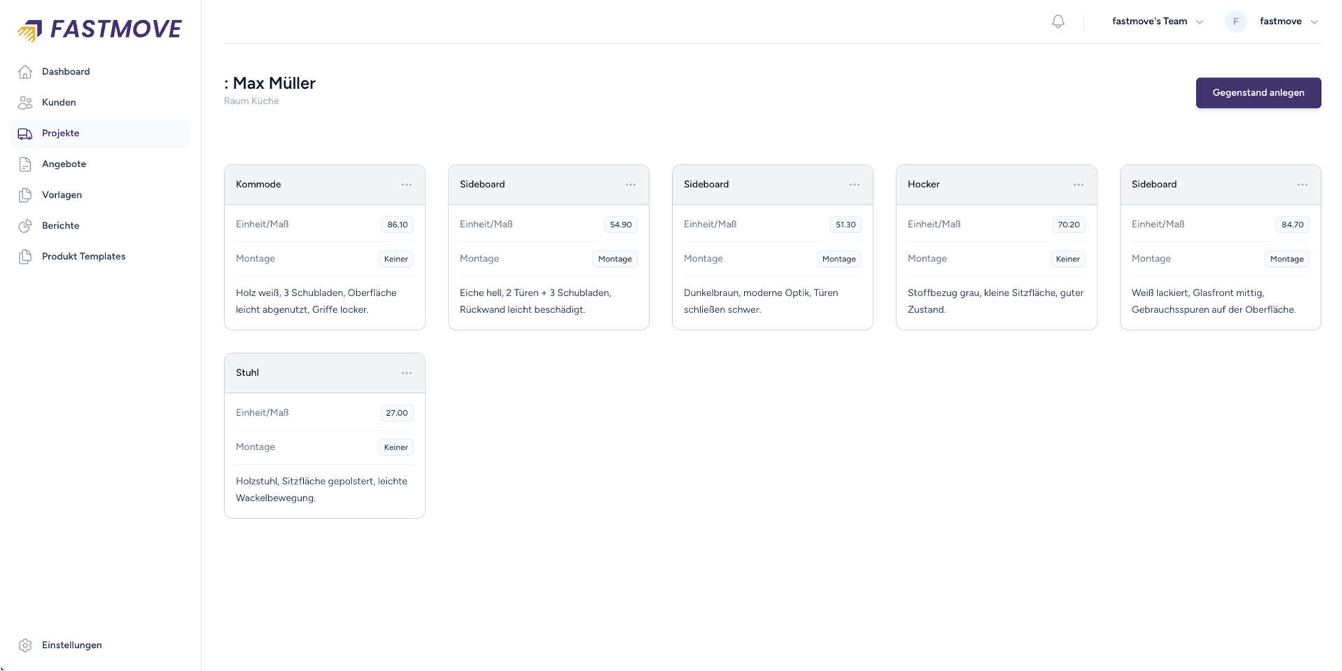 Enter the flat profile and moving goods list directly on site: FastMove allows you to create professional removal offers quickly and easily - efficiently, digitally and in a time-saving manner.