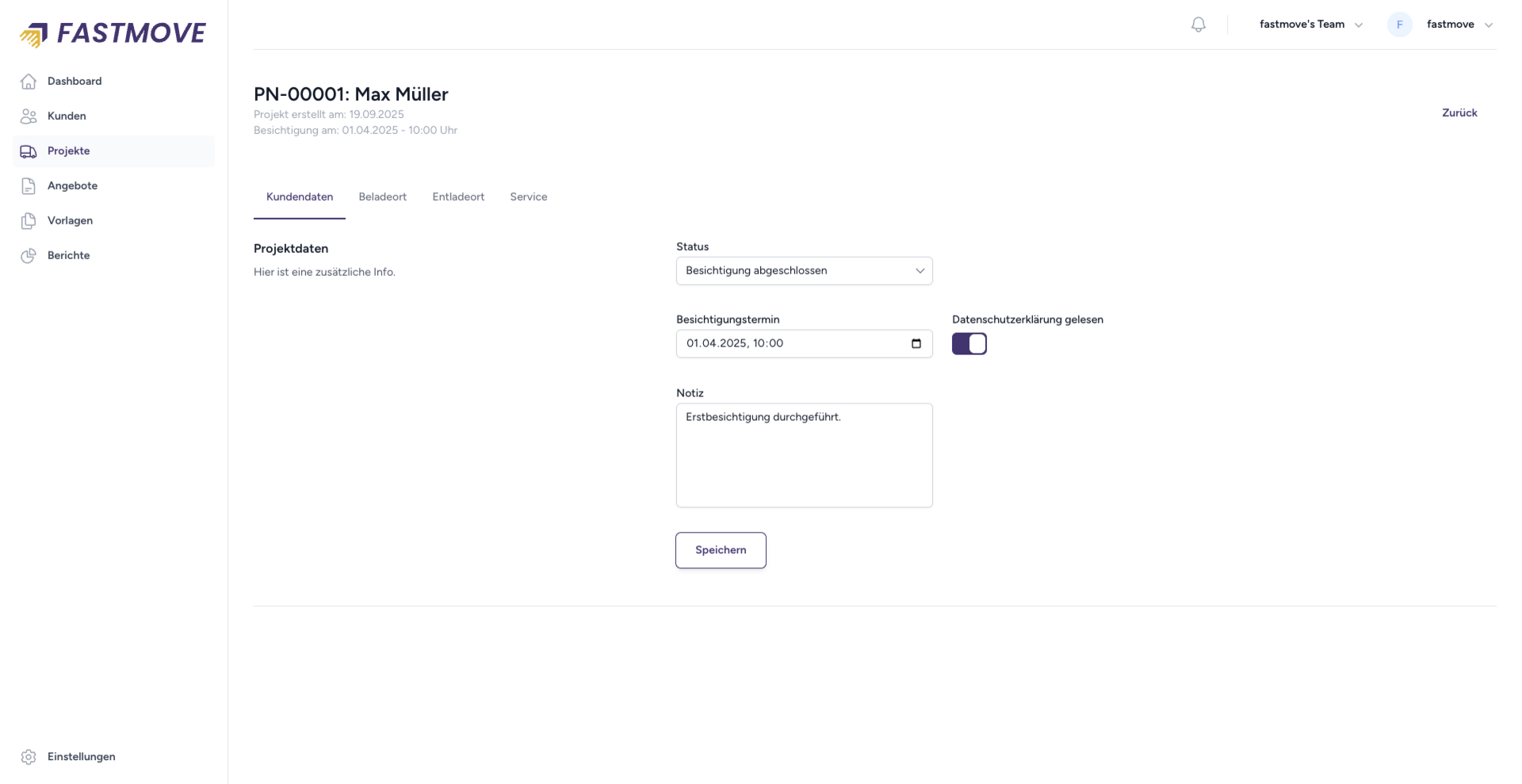 FastMove puede utilizarse de forma flexible, tanto directamente en el navegador de su smartphone o tableta como en forma de aplicación web. De este modo, tendrá la planificación de su mudanza al alcance de la mano en cualquier momento y lugar, sin necesidad de ninguna instalación adicional.