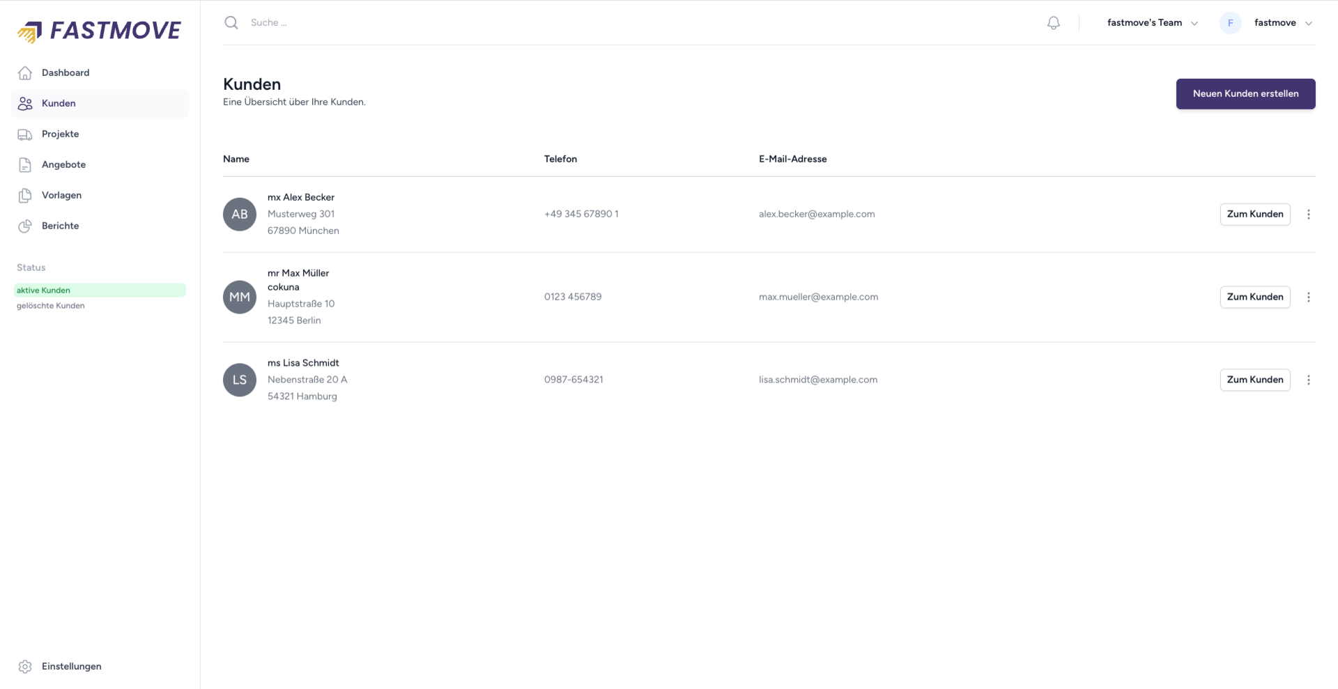 El software FastMove ofrece una solución integral para que las empresas de mudanzas digitalicen y gestionen eficazmente sus procesos. Las funciones principales incluyen: Creación de listas de bienes de mudanza y desecho, registro de datos de clientes, creación de presupuestos y facturas, exportación de datos de mudanzas, plugin de página web y branding.